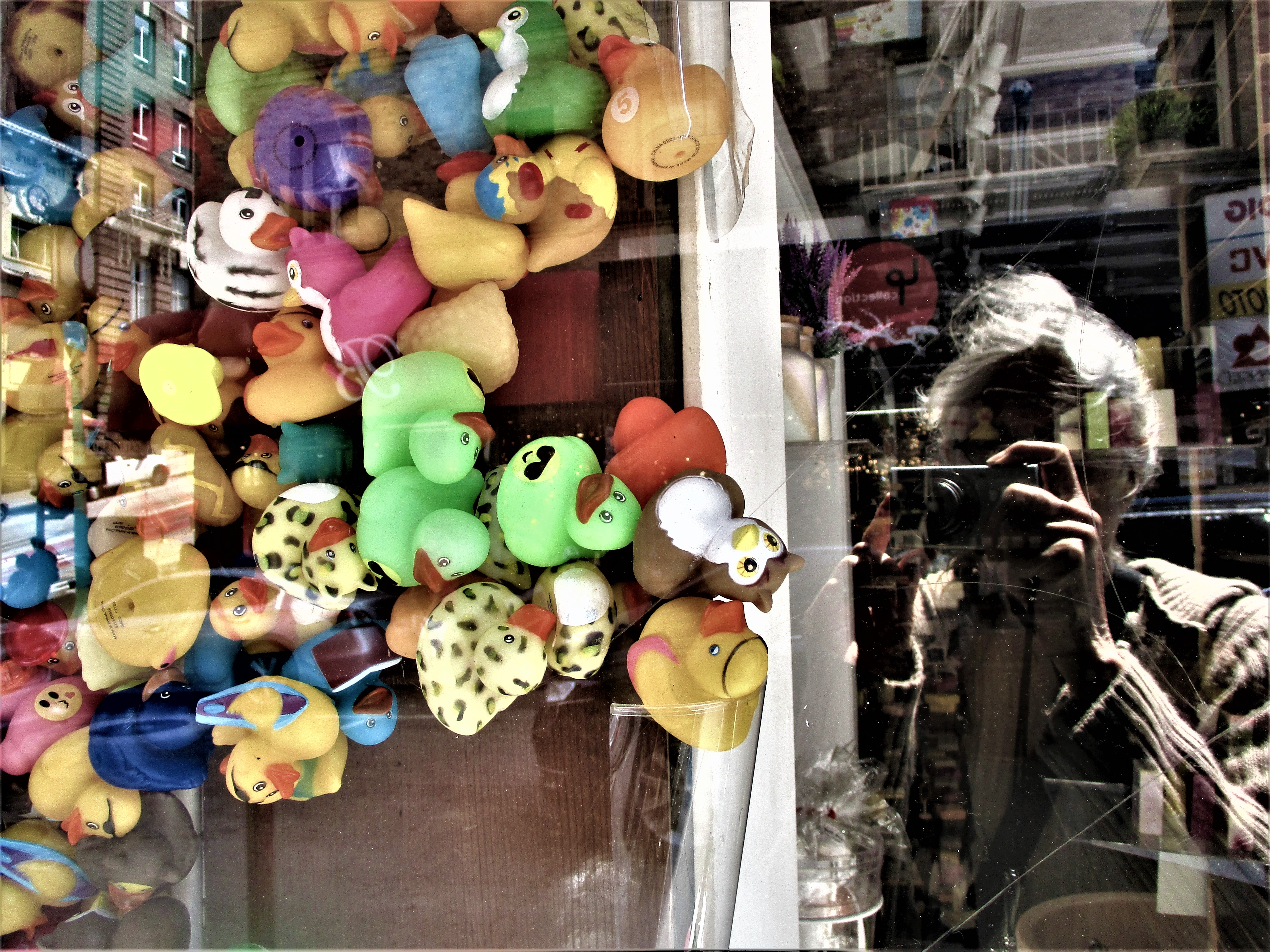 Then the #30 Muni bus arrived and I was whisked off to Union Square. Also deserted. I’m feeling more and more like the star of I am Legend. Walked slowly back to the Palace Hotel. And on the way I discovered my true (or at least latest) passion in life, taking photographs of reflections — reflections of The City in glass, in windows, in mirrors, on black granite walls, in puddles of water from the rain. Good to know. I may even hold a photo exhibit at Gallery FaceBook as well.