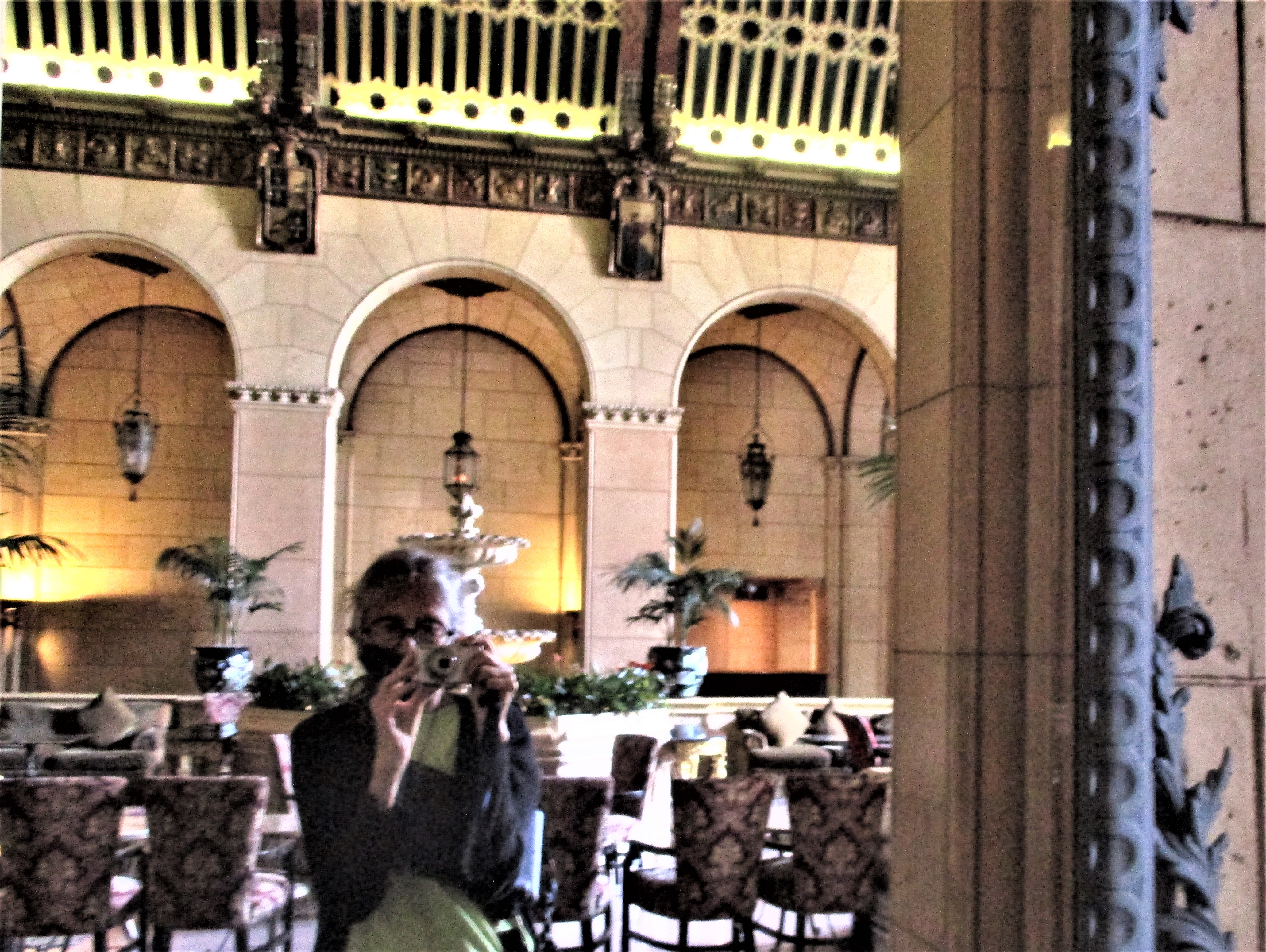 And I’ve just entered an amazing fairyland. Suddenly I was so glad that I came! This hotel puts even the Palace Hotel in San Francisco to shame. Ornate carvings. Incredible chandeliers. Vast stairways and ballrooms and terraces and chambers. Art Nouveau! In the style of San Simeon. In the style of freaking Versailles. I’m in heaven. Bring on Katherine Hepburn’s ghost! Luxury. Beauty. History. So worth the (imaginary) risk of getting COV$D-19[84]. Tomorrow maybe I’ll just curl up in a chair in the lobby, read a book and pretend that I’m Mary Pickford. Plus this place is vast. Plus I’ve got the entire ninth floor all to myself. I could willingly just move in and live here. Guess I have a thing for old hotels.