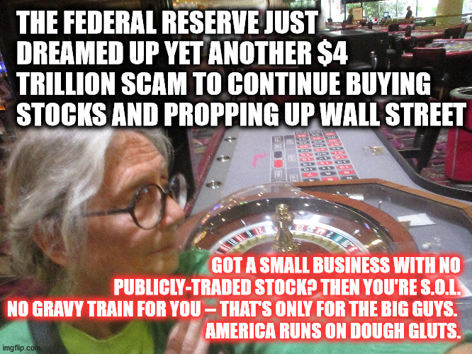 PS: Since so many high-tech companies have been pushing the lock-down so hard and Google has even told its employees that they will be working from home at least until July (and even after all those untested free-home-trial vaccine shots have given us the shakes and a fever), it seems only fair that all those hundreds of empty tech company “campuses” should be put to good use to house people who have been made homeless by said lock-down.
